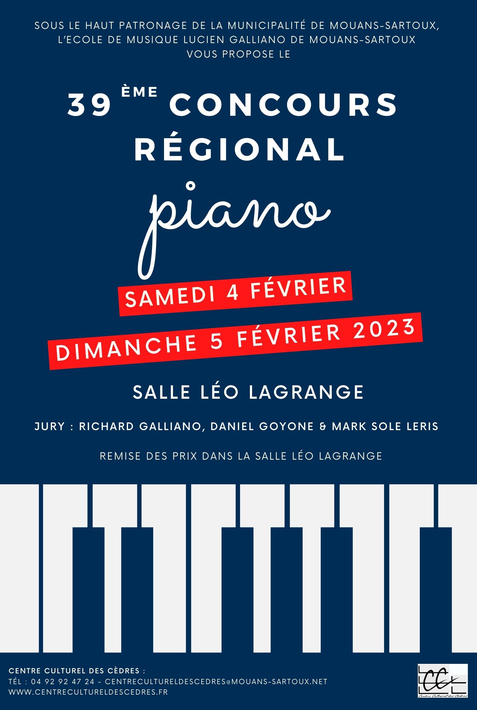 39 ÈME CONCOURS RÉGIONAL DE PIANO – SAMEDI 4 ET DIMANCHE 5 FEVRIER 2023