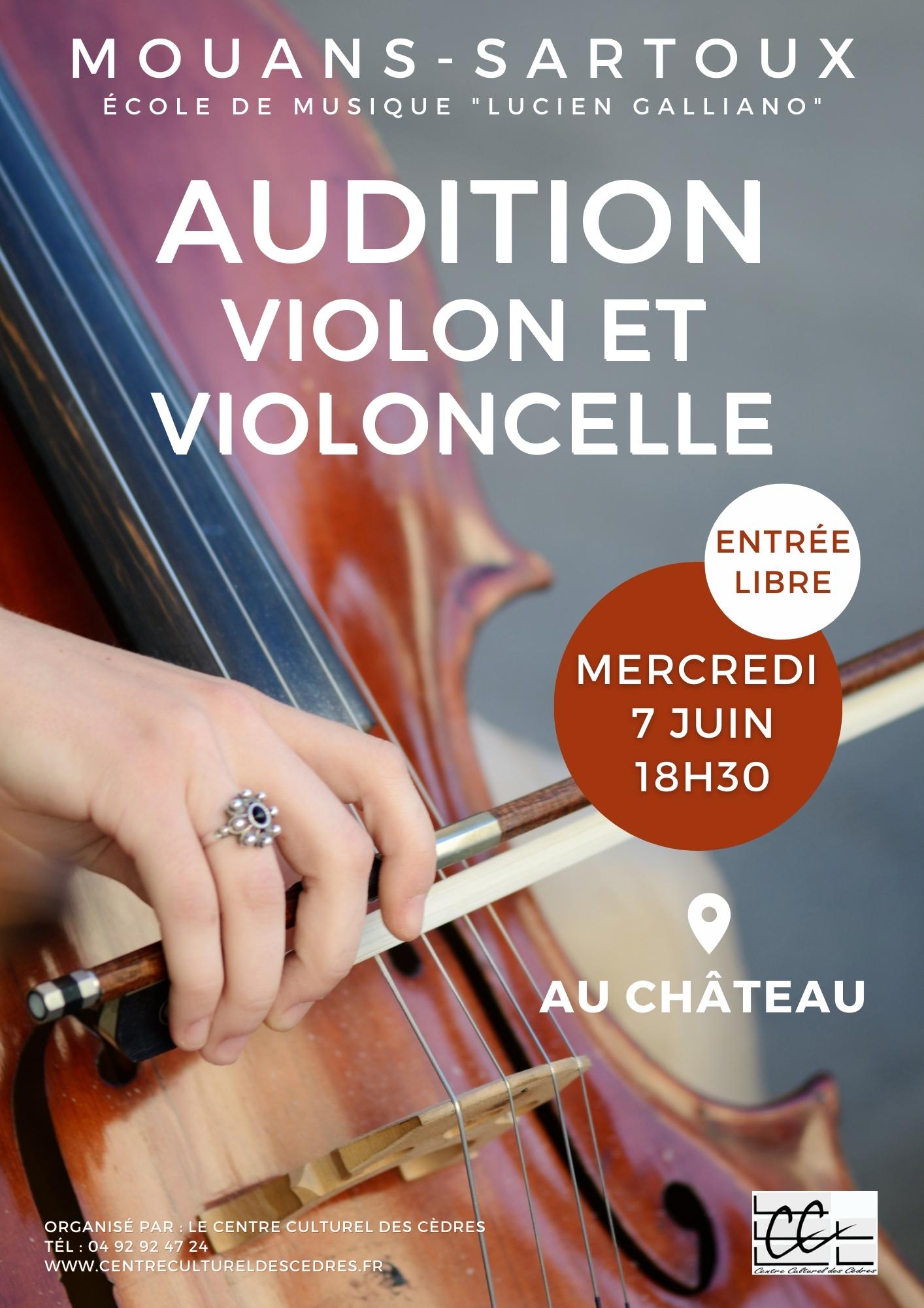 Audition violon et violoncelle – Mercredi 7 Juin à 18h30