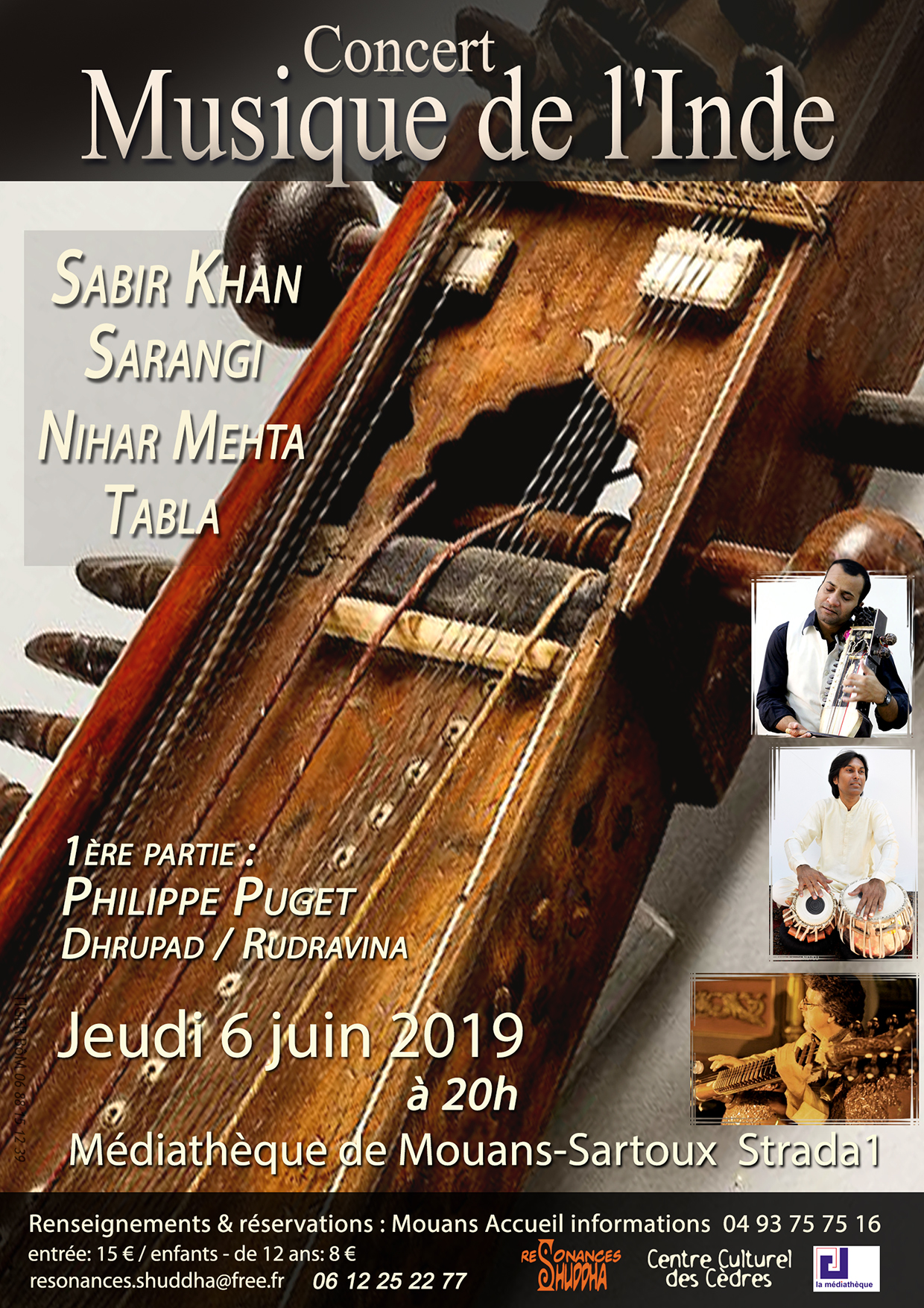 | 15€L’association Résonances Shuddha et le Centre Culturel des Cèdres de Mouans-Sartoux vous proposent un concert de musique de l’Inde avec pour la première fois un joueur de Sarangi en la personne de Sabir Khan.