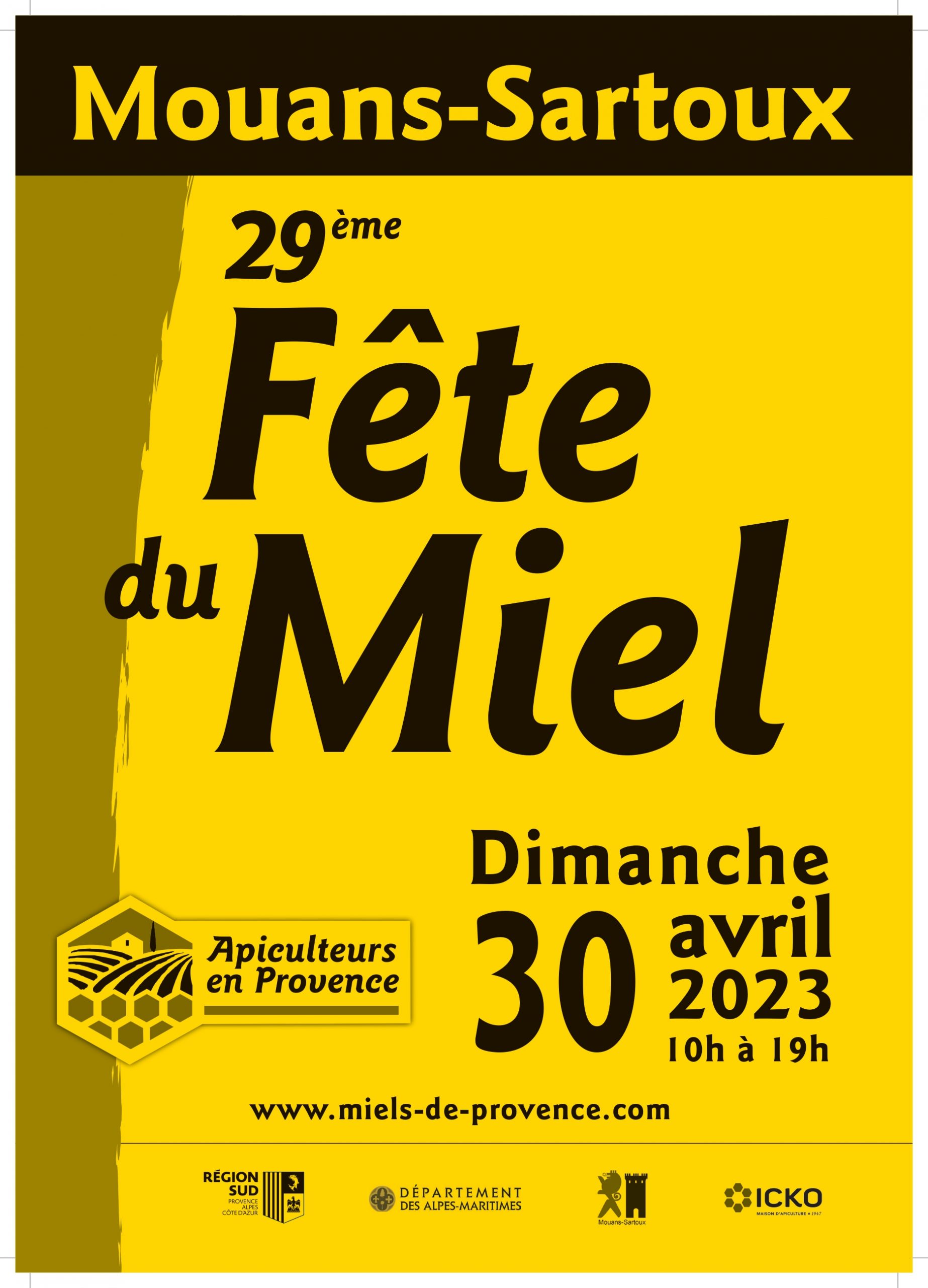 La ville de Mouans-Sartoux et le Syndicat des Apiculteurs de Provence organisent, chaque dernier dimanche d’avril, la Fête du miel. A la fois ludique, didactique et gustative, cette fête propose en plus de la vente de miels, des ateliers de dégustation, des séances d’extraction de miel et des stands pédagogiques à destination des enfants installés dans le parc du château.