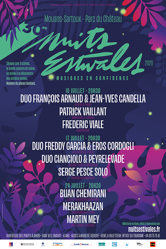 | 10€Cette année l’APAC a du revoir ses plans pour ses soirées estivales afin de vous proposer des soirées musicales d’un nouveau genre, plus intimes tout en appliquant les obligations de distanciations obligatoire.
