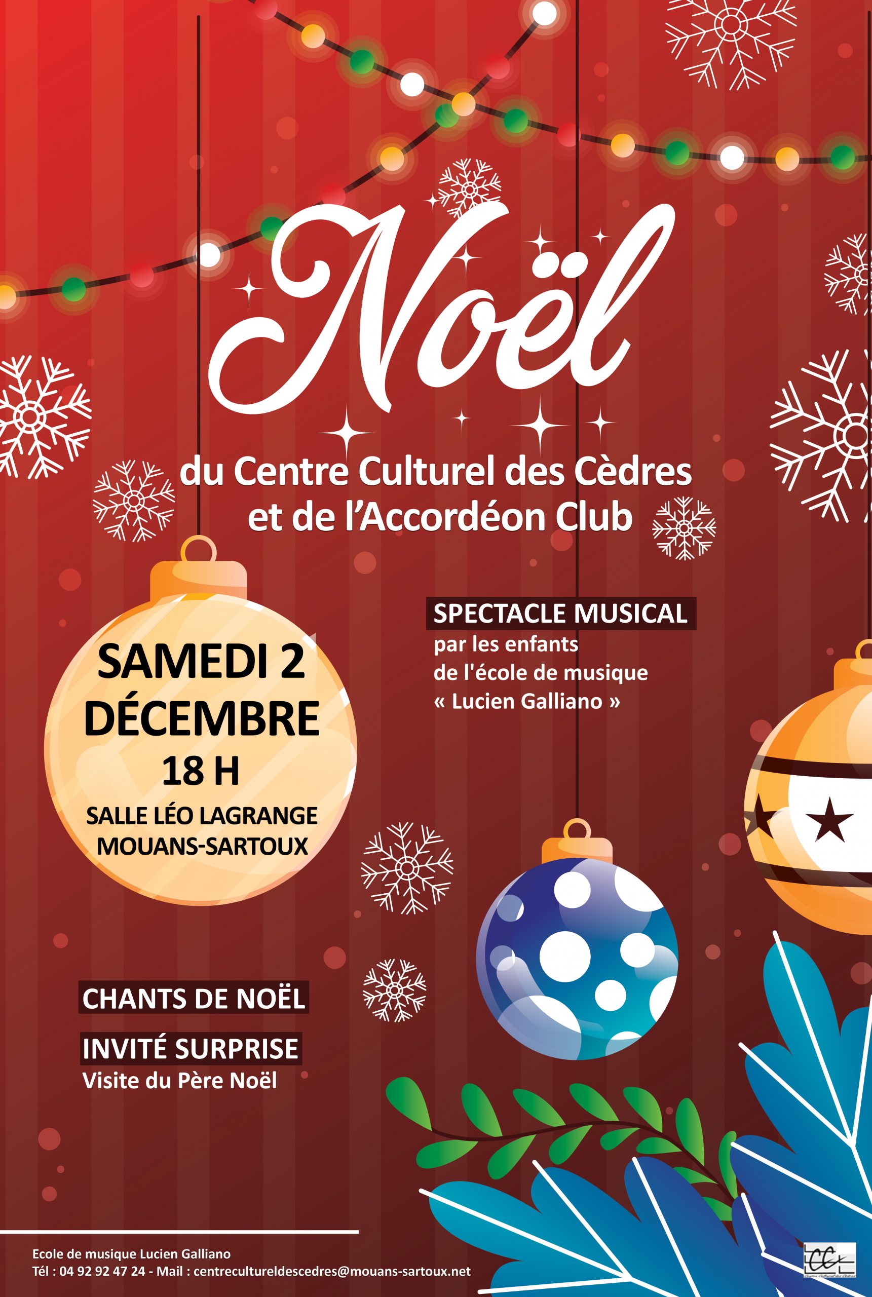| GratuitNoël du Centre Culturel des Cèdres, de l’école de musique et de l’Accordéon Cannes La Bocca Mouans-Sartoux