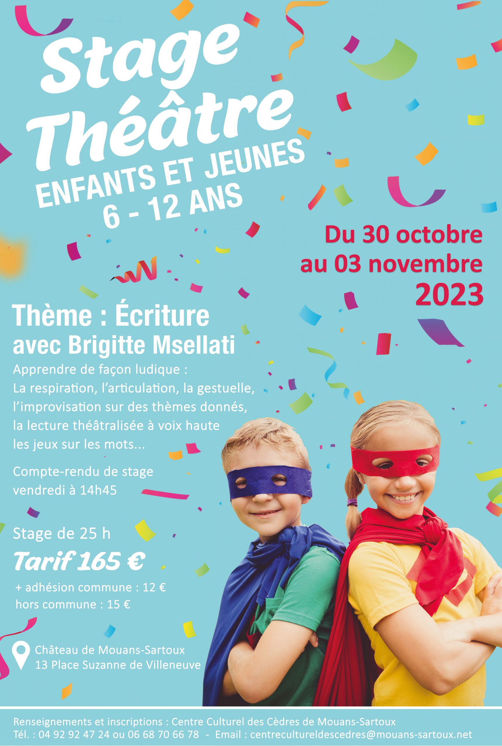 INSCRIPTIONS : Stage de théâtre enfants et jeunes – vacances de la Toussaint