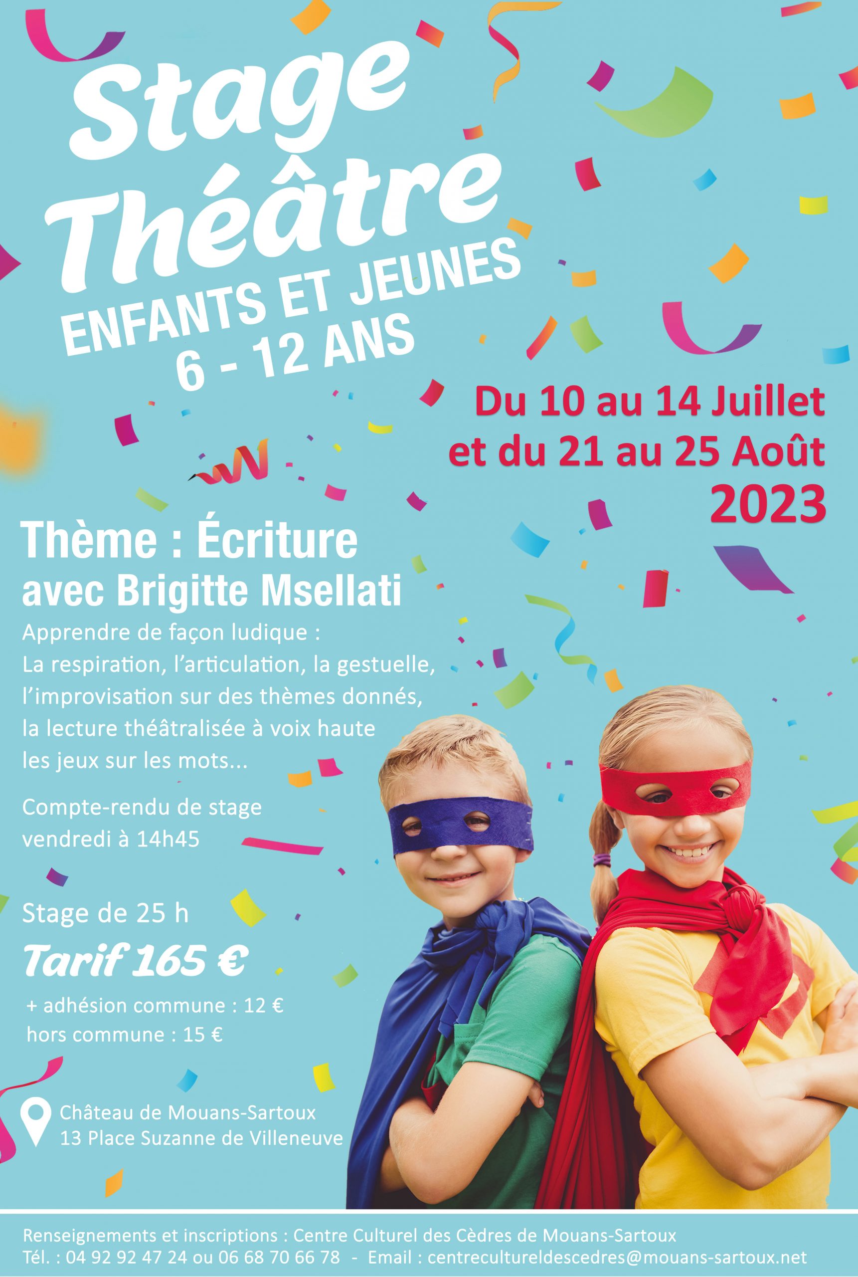 STAGE DE THÉÂTRE JUILLET & AOUT 2023 – ENFANTS ET JEUNES 6 -12 ANS
